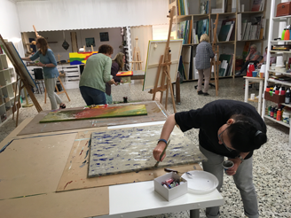 Dieser Prozess beginnt bei der Herstellung eigener Farben und Pasten, geht weiter in einem mehrwöchigen Malprozess bis hin zum Schreiben von Texten, die das Malen zu erfassen versuchen.